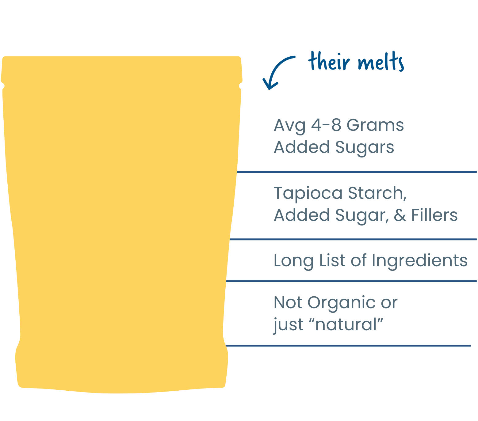 Amara organic smoothie melts contain no added sugar. Other brands often use added sugar to create a melt-in-mouth feel, with up to 8 grams of added sugar per bag!