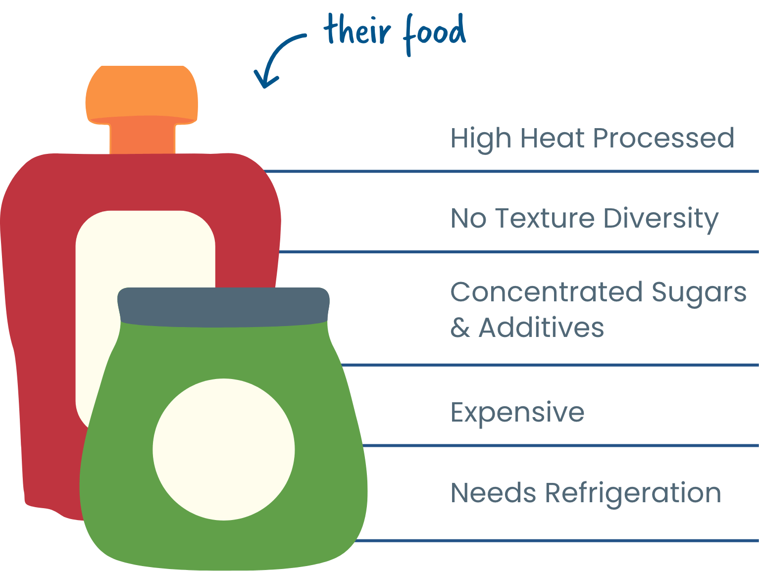 Our products contain no additives, no preservatives, no binding agents, and no added sugars. We always use the best whole ingredients to bring the benefits of fresh, homemade food direct to your table — with all the ease and convenience of packaged food. We promise that you and your baby will see, smell, and taste the difference.