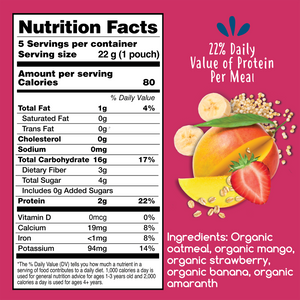 Organic oats, organic mango, organic strawberry, organic banana, organic amaranth