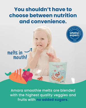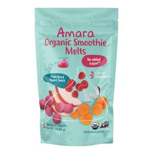 Amara organic smoothie melts contain no added sugar. Other brands often use added sugar to create a melt-in-mouth feel, with up to 8 grams of added sugar per bag!