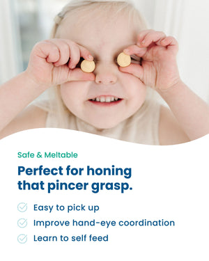 Designed for little fingers and mouths in mind, our smoothie melts are easy to pick up, safe, and delicious. Ideal for babies and toddlers learning to self-feed, practicing their pincer grip, and improving hand eye coordination.